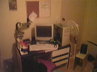I'm on a DELL Latitude D810 2Ghz processor, 1Gb of RAM and an 80Gb hard disk. It's got a nice big screen with a really high resolution which is cool for films and stuff but text can be a little hard to read in some places.
