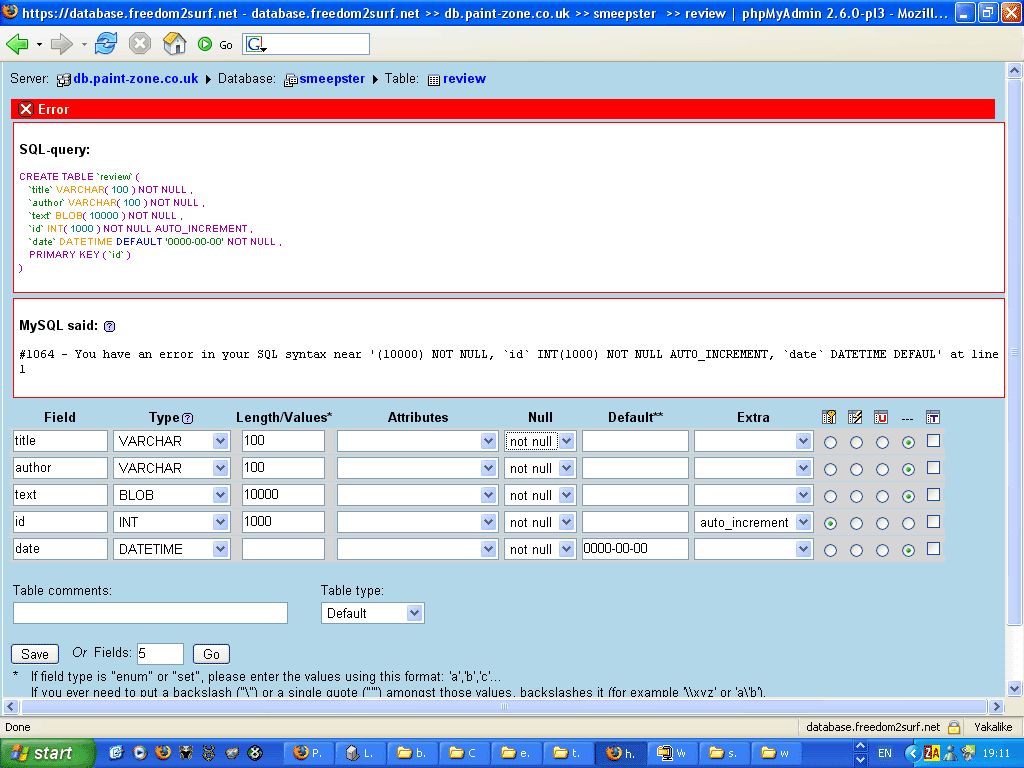You will also need to take into account that "text" and "date" are reserved words in mysql, so you will need to enclose them in backticks when building queries.