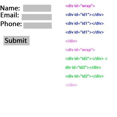 What i need to do is wrap each group of <div id="id(X)"></div>. So if the submit button has been hit twice there should be :
